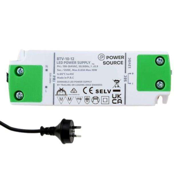 Power Source BTV-10-12-AUP 12V 10-WATT AC TRIAC Dimmable LED Driver with Flex and Plug