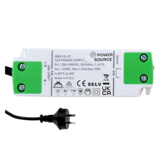 Power Source BNV-15-12-AUP 12V 15-WATT LED Driver with Australian Flex and Plug