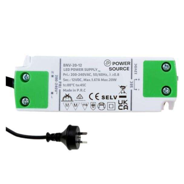 Power Source BNV-20-12-AUP 12V 20-WATT LED Driver with Australian Flex and Plug
