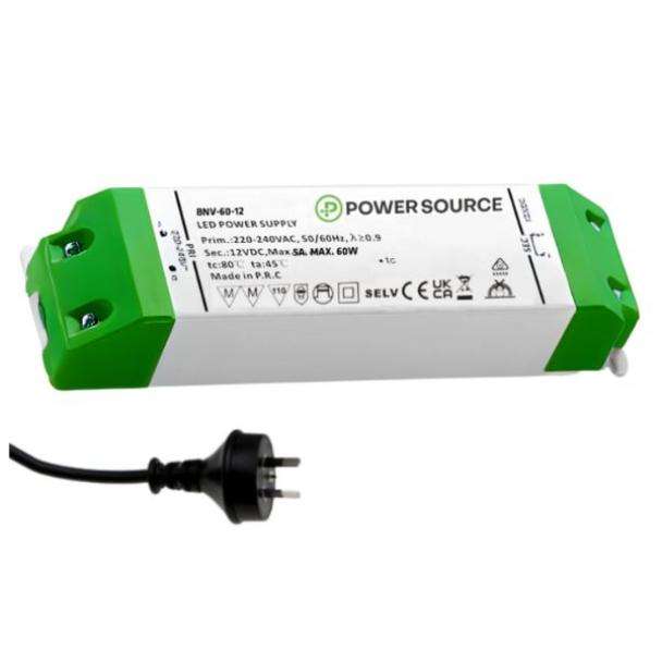 Power Source BNV-60-12-AUP 12V 60-WATT LED Driver with Australian Flex and Plug