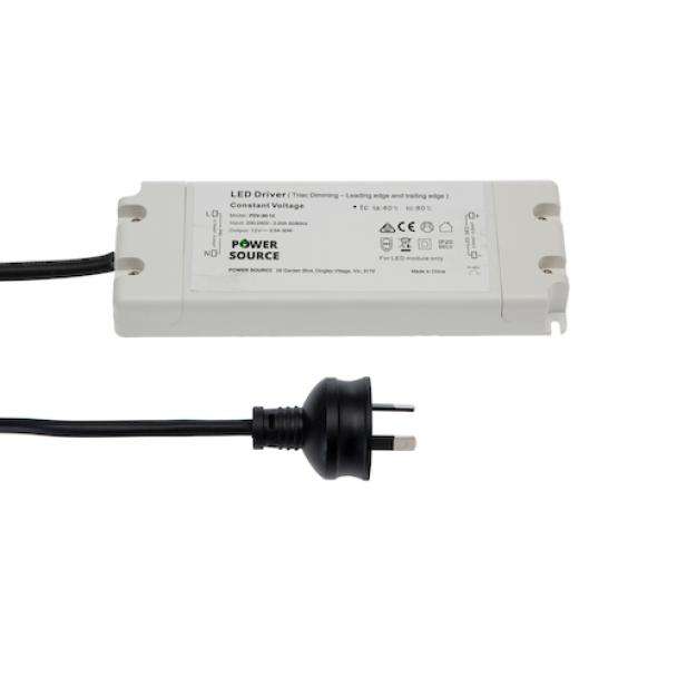Power Source PDV-30-12 Indoor 12V DC 30W Mains Phase-Cut Dimmable LED Driver with Flex and Plug