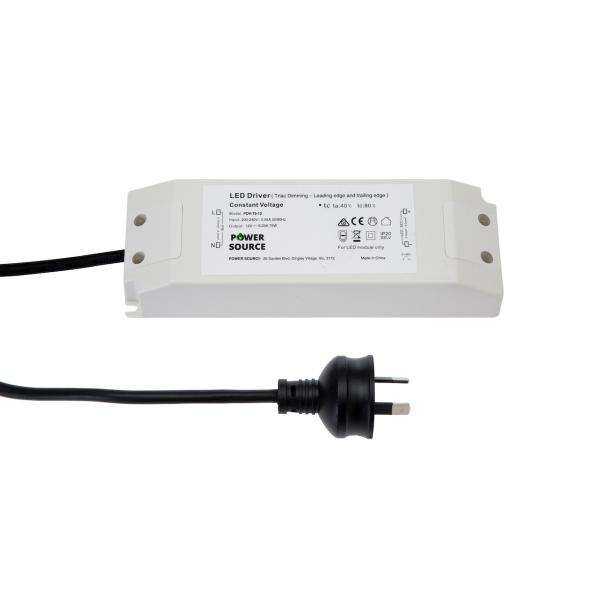 Power Source PDV-75-12 Indoor 12V DC 75-WATT Mains Phase-Cut Dimmable LED Driver with Flex and Plug